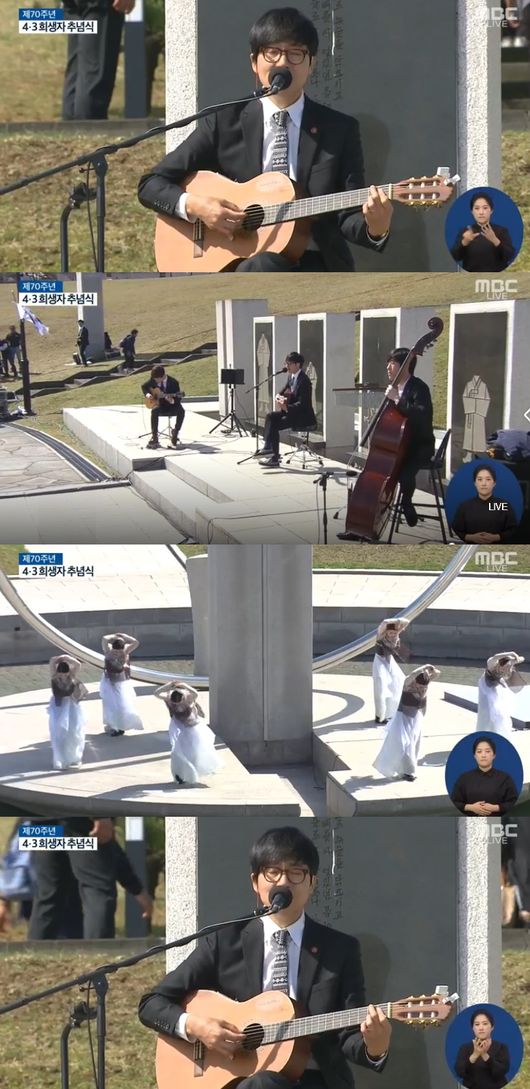 가수 루시드폴이 제주 4.3 사건 희생자 추념식에서 '4월의 춤'을 열창했다.