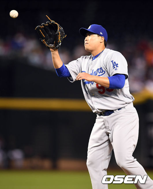 류현진은 닉 아메드를 중견수 뜬공으로 처리했다. 포수 알렉스 아빌라를 상대로 류현진은 1S3B로 몰렸다. 결국 첫 볼넷을 내줬다. 류현진은 9번 투수 타이후안 워커를 땅볼로 잡아 위기를 넘겼다. / jasonseo34@osen.co.kr
