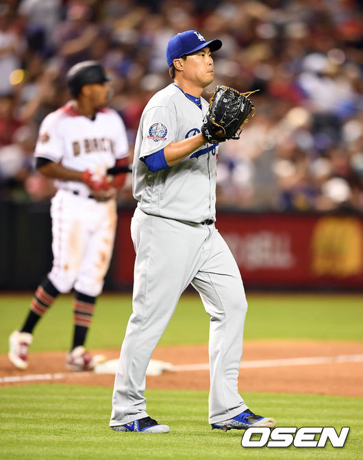 류현진은 3일(한국시간) 미국 애리조나주 피닉스 체이스필드에서 열린 '2018 메이저리그' 애리조나 다이아몬드백스와의 경기에 등판해 3⅔이닝 동안 5피안타 5볼넷 2탈삼진 3실점을 기록하고 강판됐다.