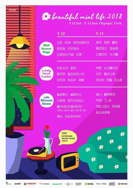 가수 정준일부터 멜로망스, 문문, 박원 등이 '2018 뷰티풀 민트 라이프' 출연을 확정지었다.