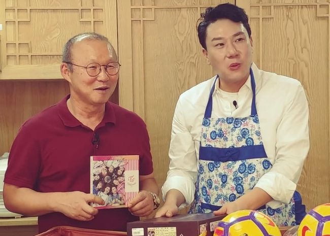 공개된 사진 속에서 이상민과 박항서 감독은 푸짐하게 차려진 한 상 앞에서 소주를 기울이거나 다정하게 대화를 나누는 모습. 박항서 감독은 트와이스의 사인 CD를 들고 아빠 미소를 짓고 있는 모습으로 웃음을 자아낸다.
