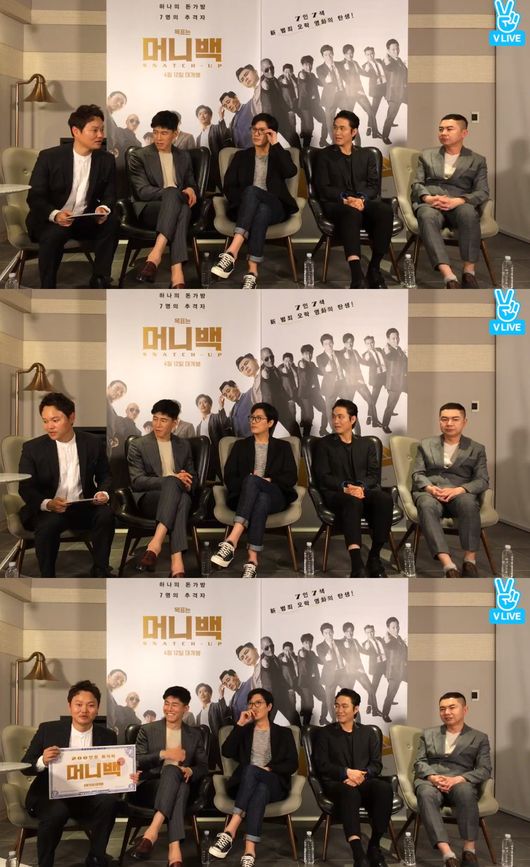 김무열, 박희순, 임원희, 오정세, 김민교는 3일 네이버 V앱을 통해 방송된 영화 '머니백' V라이브 스내치 업(Snatch Up)'을 통해 유쾌한 영화 이야기를 전했다.