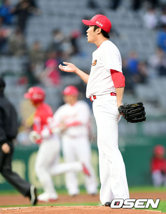 두 번째 투수 정영일이 이범호를 2루수 뜬공으로 잡아내 박종훈은 이날 5.2이닝 3실점을 하고 마운드를 내려갔다. 시즌 첫 승에 도전한다. /skullboy@osen.co.kr
