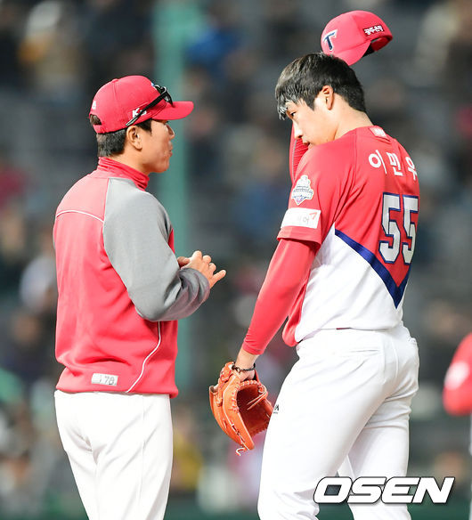 이날 KIA는 우완 이민우(25)를 선발로 내세웠다. 지난해 막판 선발로서 가능성을 보였고 시즌을 4선발로 시작했다. 첫 경기였던 3월 28일 광주 삼성전에서도 4실점했으나 6이닝을 버텼다. 아직 임기영이 이탈해 있는 KIA 벤치도 한 번 더 기회를 줬다. 하지만 이날은 제구가 좋지 않았다.