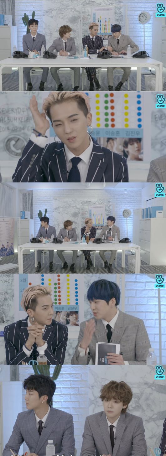 강승윤은 1번 트랙이자 타이틀곡인 '에브리데이'에 대해 "팬송이 아닌 척 같지만 팬송이다. 여러분들과 매일 매일을 하고 싶다는 내용이다"라고 말했다.