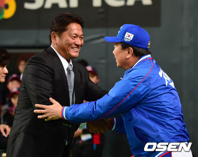 [사진]ⓒGettyimages(무단전재 및 재배포 금지)/작년 11월 APBC 대회에서 선동렬 대표팀 감독과 악수하는 사사키(아래).