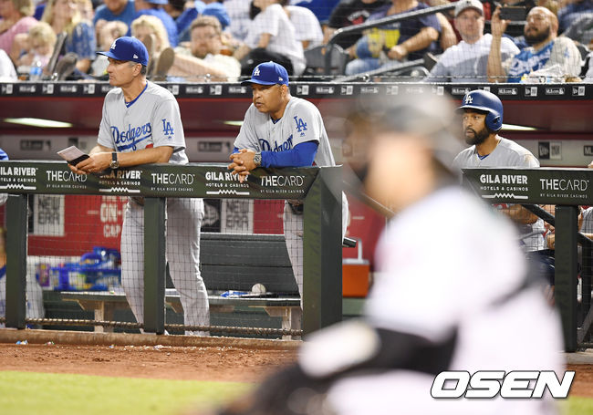 이날 다저스는 불펜투수 알렉산더와 바애즈가 밀어내기 볼넷을 3개나 허용하며 무너졌다. 로버츠는 “실수가 너무 많았다. 특히 밀어내기 볼넷은 끔찍했다. 공격도 안 풀렸다는 것을 우리도 안다. 터너가 있었다면 좋았겠지만 우리는 선수층이 충분히 깊다. 선수들은 오늘 잘했다”며 선수들을 격려했다. / jasonseo34@osen.co.kr
