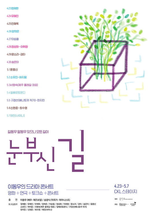 이동우는 4월 23일부터 5월 7일까지 총 20회에 걸쳐 서울 중구 다동에 위치한 CKL 스테이지에서 드라마 콘서트 ‘눈부신 길’을 개최하며, ‘고단한 우리 삶에 대한 솔직한 고백’을 주제로 음악, 영상, 토크가 어우러진 다채로운 공연을 펼칠 계획이어서 높은 관심이 기대된다.