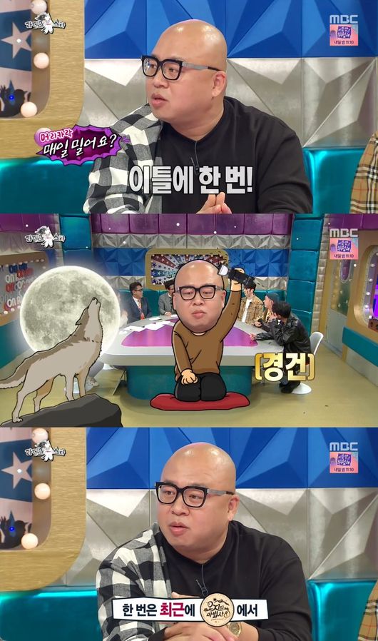 그러면서 그는 “제가 매운 음식을 먹으면 머리에만 땀이 난다. 몸은 보송보송한데 머리에만 땀이 나 남들에게 보이기 부끄러웠다”며 “그 날 이후 머리를 한 번 밀어봤다. 땀이 났을 때 수건으로 닦으니 편안하더라. 그래서 그 때부터 계속 밀기 시작했다”고 말했다.