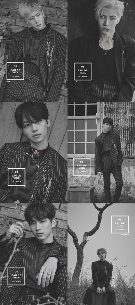 소속사 젤리피쉬엔터테인먼트는 5일 0시 빅스의 공식 SNS 채널을 통해 정규 3집 앨범 ‘EAU DE VIXX(오 드 빅스)’의 메인 컨셉이 담긴 흑백 버전의 개별 및 단체 오피셜 포토를 공개했다. 지난 4일 다채로운 색감과 몽환적인 표정으로 신비로운 분위기를 실은 1차 포토로 화제를 모았던 빅스는 2차 포토에서 한층 더 짙어진 분위기와 고혹적인 매력을 담아내며 ‘독보적 컨셉돌’다운 면모를 과시했다.