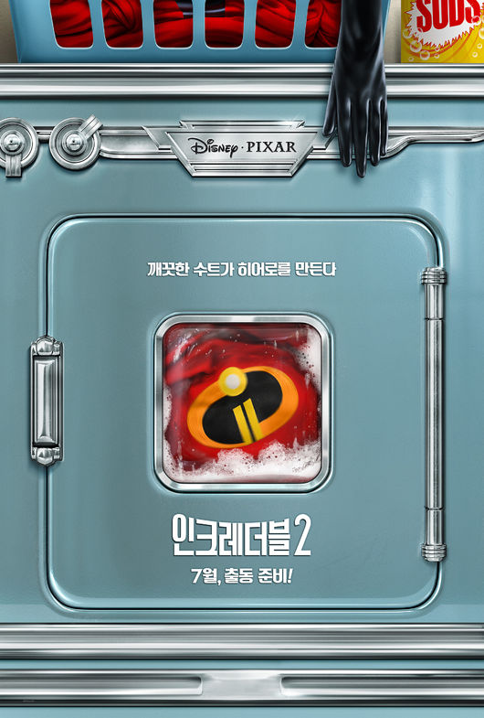 이번에 공개된 티저 포스터3종은 뼈대 있는 슈퍼 히어로 ‘파’ 가문의 아빠 ‘밥’이 출동을 위해 수트를 세탁하는 과정을 담고 있다. 첫번째는 ‘휴가는 끝났다’는 카피와 함께 묵은 때가 가득한 수트가 빨래 바구니에 담겨있는 포스터. 출동을 앞둔 그들의 비장미가 물씬 풍겨온다.