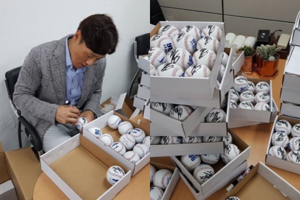 이승엽 이사장은 4일 자신의 인스타그램에 5장의 사진을 게재했다. 그는 "4월 8일 대구 수성아트피아에서 진행하는 출범식에 초대된 아이들을 위해 준비한 재단기념 공에 사인을 마쳤다. 하나하나 사인도 하고 케이스에 담고 포장도 하고 힘들기도 했지만 재단 사무국 직원들과 즐겁게 준비했다. 아이들이 좋아했으면 한다"고 기대감을 숨기지 않았다.