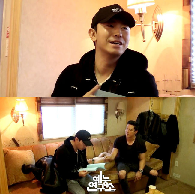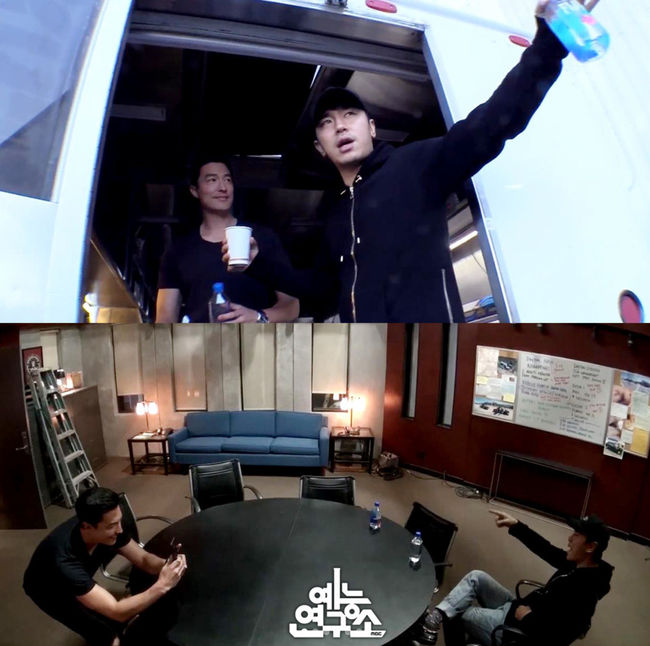 사진 속에 이시언이 다니엘 헤니에게 초대받아 ‘크리미널 마인드’의 촬영장에 방문한 모습이 담겨있다.