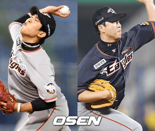 한화 마무리투수 정우람(33)과 새로운 필승맨 박상원(24)은 공통점이 있다. 주자가 없어도 세트 포지션을 유지한다. 이어 투구시 공을 쥔 손을 글러브 안에서 짧게, 한 번 툭 치고 난 뒤 공을 던진다. 정우람은 오래 전부터 이렇게 던져왔지만 박상원도 어느 순간부터 이렇게 따라하고 있다.
