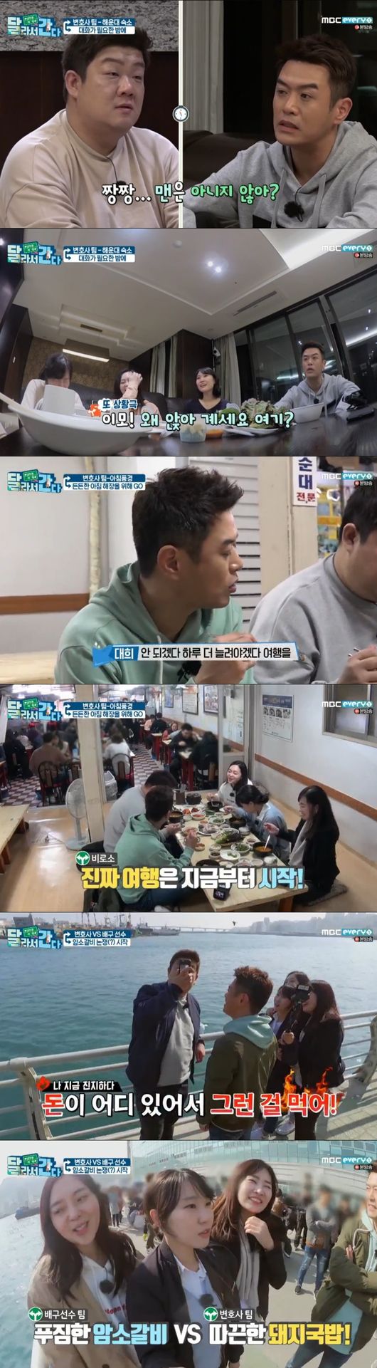 5일 방송된 MBC 에브리원 '달라서 간다'에서는 김대희, 유민상, 솔비, 유승우가 두 팀으로 나눠 부산을 다르게 여행하는 모습이 담겼다.