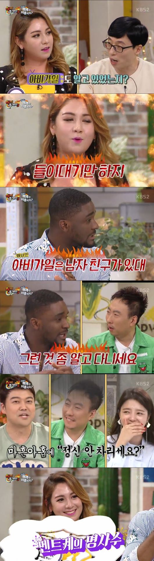 5일 방송된 KBS '해피투게더3'에는 샘오취리, 아비가일, 버논, 한현민, 스잘이 출연했다. 샘과 아비가일은 최근 불거진 썸에 대해 해명했다.