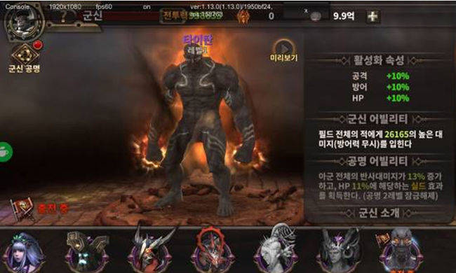 이번 업데이트에 새롭게 추가된 신규 군신 ‘대지의 사자 타이탄’은 필드 전체에 방어력을 무시한 높은 대미지를 입혀 플레이 영웅의 전투를 지원하며, 아군 전체의 반사 대미지 증가와 실드 효과를 주는 공명 효과를 지원한다.