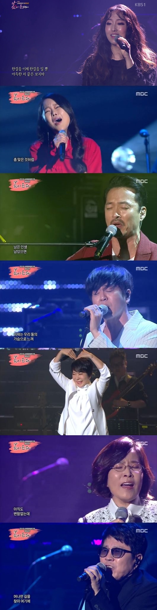 '봄이 온다' 무대에 오른 가수들 역시 평양에 온 떨리는 마음을 감추지 않았다. '가왕' 조용필은 "2005년 평양에서 공연할 때 많은 분들이 음악을 통해 서로의 마음을 이해하고 교감했다. 그 때보다 더 즐겁고 신나는 시간을 만들고 싶다"고 밝히며 자신의 대표곡을 열창했다.