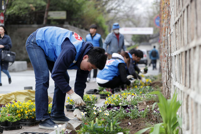 감고당길은 인사동과 북촌을 잇는 길로 외국인들이 특히 많이 찾는 관광명소다. 연맹의 이번 사회공헌활동은 감고당길 일대 토사유출지역에 꽃길을 조성하는 활동으로 진행됐다.