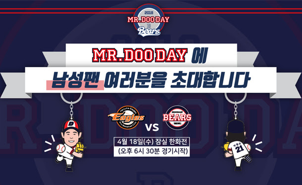 두산 베어스가 18일 잠실에서 열리는 한화와의 홈경기에서 ‘미스터두데이(Mr. Doo Day)’ 이벤트를 개최한다.