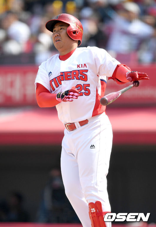 이범호는 6일 광주-기아 챔피언스필드에서 열린 넥센 히어로즈와의 경기에 선발출전했으나 첫 타석에서 상대투수의 볼에 오른손을 맞았다.