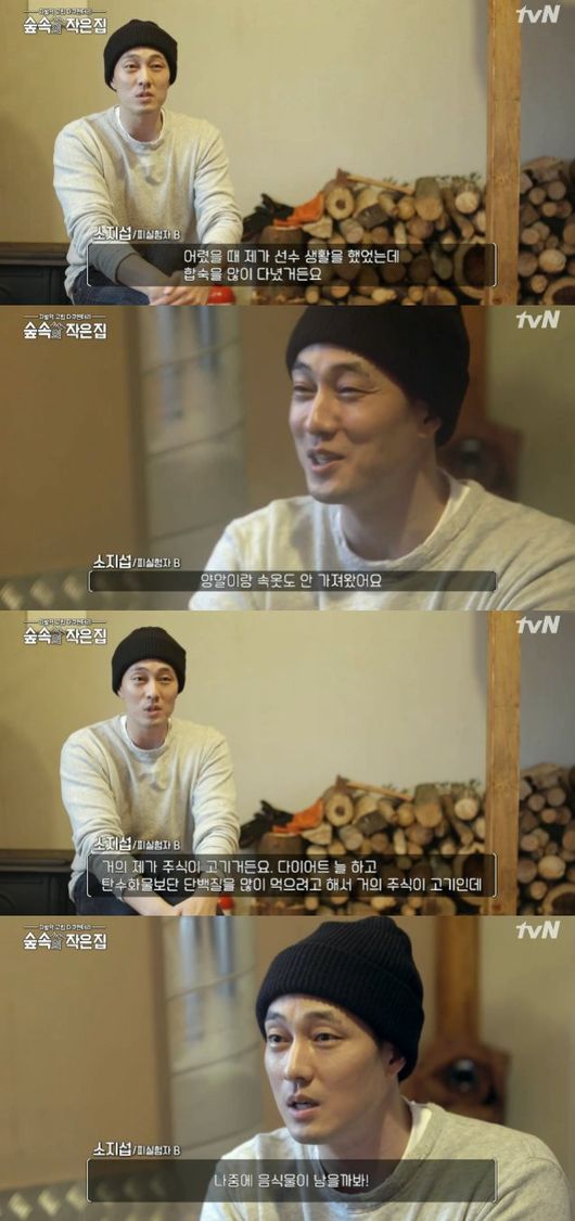 6일 첫 방송된 tvN 새 예능 '숲속의 작은집(이하 숲속집)' 1회에서는 숲속에 있는 작은 집을 소개하는 피실험자B 소지섭의 모습이 전파를 탔다.