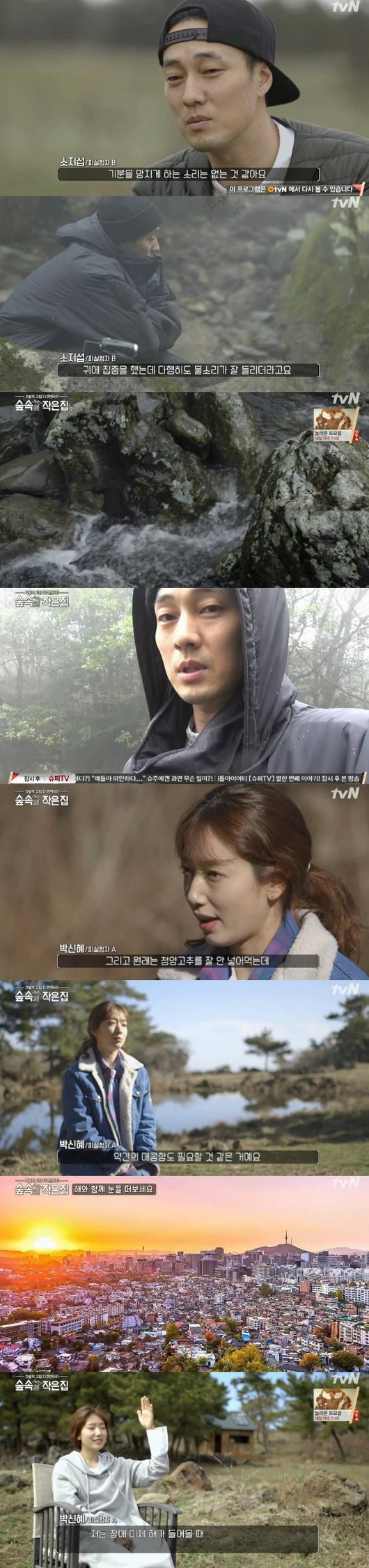 지난 6일 첫 방송된 tvN 새 예능 '숲속의 작은집' 1회에서는 각자 배정받은 숲속의 작은 집에서 생활하는 피실험자A 박신혜와 피실험자B 소지섭의 모습이 전파를 탔다.