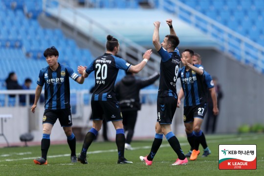 인천은 7일 오후 인천축구전용경기장서 열린 KEB하나은행 K리그1 2018 5라운드 홈 경기서 전남과 2-2로 비겼다. 이로써 인천은 1승 3무 1패(승점 6)를 기록하며 6위를 유지했다. 전남도 1승 2무 2패(승점 5)로 7위에 머물렀다.