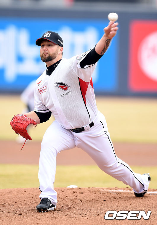 KT는 선발 투수 피어밴드가 7이닝 2실점을 기록한 뒤 신병률과 김재윤이 남은 이닝을 무실점으로 지워내면서 승리를 지켰다. 피어밴드는 이날 경기 승리 투수가 됐다. 반면 샘슨은 시즌 3패 째를 당했다. / bellstop@osen.co.kr