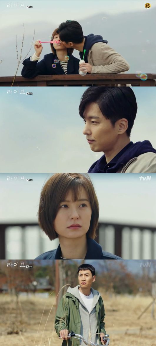 7일 방송된 tvN 주말 드라마 '라이브(연출 김규태, 극본 노희경)' 에서 상수(이광수 분)가 정오(정유미 분)와 명호(신동욱 분)의 입맞춤 장면을 목격했다.