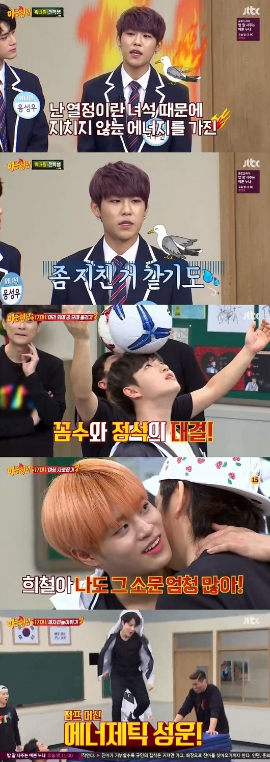7일 방송된 JTBC '아는형님'에서는 그룹 워너원이 게스트로 출연해 '아는형님' 멤버들과 17:1 대결을 펼치는 모습이 그려졌다.