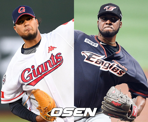 8일 오전 현재 KBO리그 평균자책점 순위 맨 아래엔 2명의 외국인 투수가 나란히 자리했다. 펠릭스 듀브론트(롯데)가 11.37로 26명의 규정이닝 투수 중 가장 높고, 그 다음 키버스 샘슨(한화)이 9.22로 뒤따르고 있다. 두 선수 모두 시즌 개막전 선발투수로 나설 만큼 팀에서 거는 기대가 컸기에 실망도 크다.