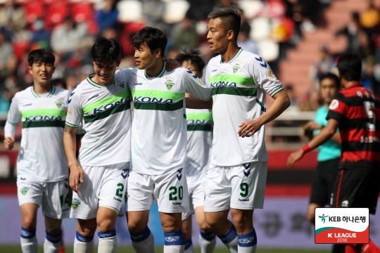 전북 현대는 8일 포항 스틸야드에서 열린 K리그 1 2018 5라운드 포항 스틸러스와 경기서 포항 출신인 이동국-손준호의 연속골에 힘입어 2-0으로 승리했다. 이날 승리로 전북은 4승 1패 승점 12점으로 포항을 끌어 내리고 2위에 올랐다. 반면 포항은 무패행진이 중단됐다.