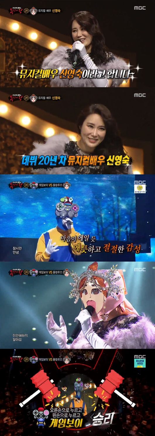 그 결과 51대 48 3표차로 게임보이가 물랑루즈를 누르고 3라운드에 진출했다. 물랑루즈의 정체는 뮤지컬 배우 신영숙이었다. /mk3244@osen.co.kr