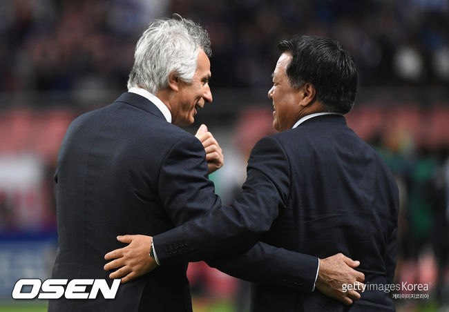 [사진] 좌는 할릴호지치 감독. 우는 타지마 JFA 회장. ⓒGettyimages(무단전재 및 재배포 금지)