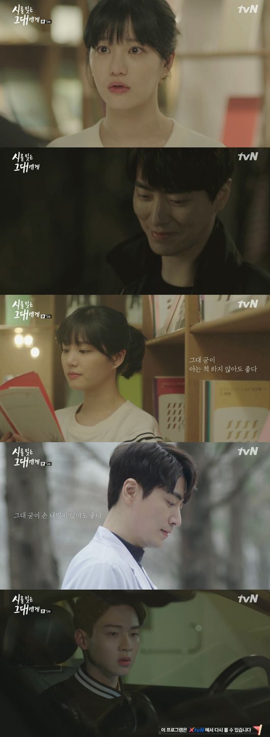 9일 방송된 tvN 월화 드라마 '시를 잊은 그대에게' 5화에서 우보영(이유비 분)은 예재욱(이준혁 분)이 자신을 좋아하는 것 같다는 동료 김윤주(이채영 분)의 말에 설레기 시작했다.