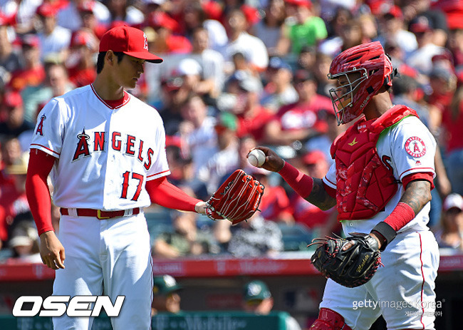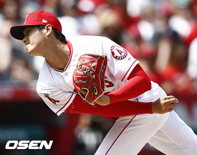 이도류로 메이저리그를 뒤흔들고 있는 괴물 오타니 쇼헤이(23·LA 에인절스)가 지난 9일 오클랜드와의 홈경기에서 투수로 등판해 7이닝 1피안타 1볼넷 12탈삼진 무실점 호투로 시즌 2승을 따냈다. 오클랜드 타자들은 말 그대로 헛스윙하기 바빴다.