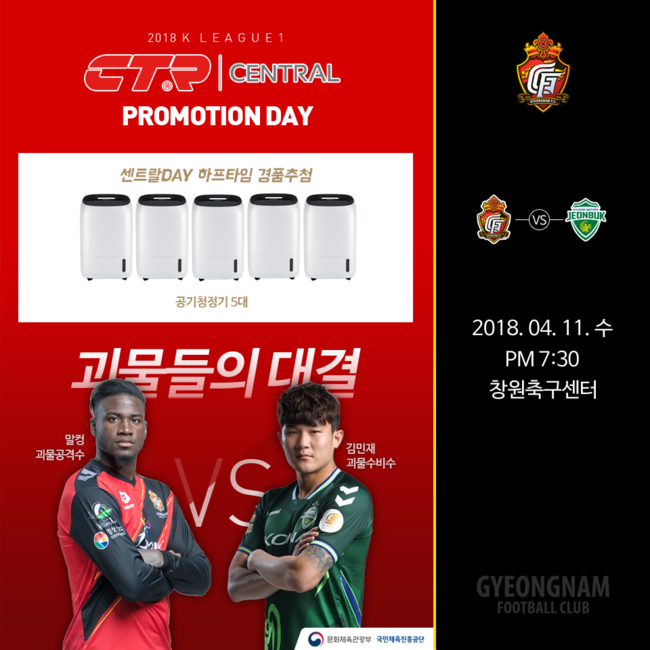 경남은 디펜딩 챔피언인 전북과 맞대결에서 경남의 돌풍을 이어 나갈 수 있도록 하며, 승리를 통해, CENTARL DAY를 맞이하여 경기장을 찾아오는 CENATARL 임직원들에게 승리를 기쁨을 선사 할 수 있도록 만반의 준비를 할 계획이다.
