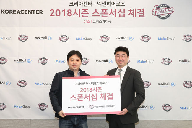 넥센 히어로즈는 10일 오후 고척 스카이돔에서 전자상거래 비즈니스 전문기업 (주)코리아센터와 2018시즌 광고 후원에 따른 스폰서십 계약을 체결했다.