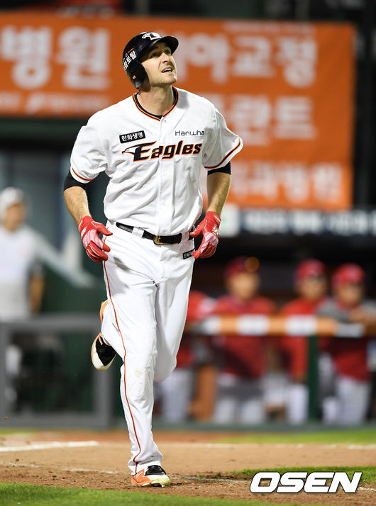 1회말 2사 1루 첫 타석 시작부터 호잉의 방망이가 불을 뿜었다. KIA 선발 한승혁의 2구째 가운데 몰린 151km 직구를 밀어쳐 좌중간 담장을 넘겼다. 비거리 120m, 시즌 4호 홈런. 선제 투런 홈런으로 한화의 기선 제압을 이끌었다.