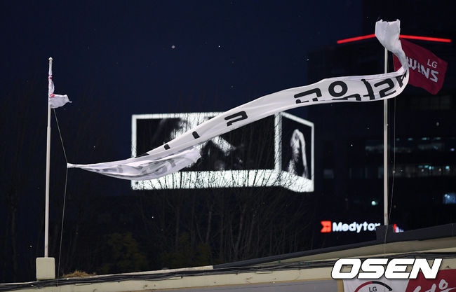 경기가 시작되고 오후 7시 무렵, 잠실구장 외야 상단 벽에 붙여져 있던 대형 현수막이 바람을 이기지 못하고 떨어져 하늘 높이 떠올랐고, 야구장 밖으로 날아갔다. 이후 LG측은 외야 벽에 붙은 현수막을 모두 떼어냈다. 안전사고를 예방하기 위해서였다. (KBO리그 타이틀스폰서 신한은행의 현수막은 고정식이라 유일하게 남아 있었다)