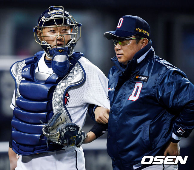 두산과 삼성이 맞붙은 10일 대구 삼성라이온즈파크. 7회초 타석 때 심판 판정에 불만을 보였던 포수 양의지는 7회말 교체된 투수 곽빈이 연습 투구를 하자 발을 빼며 공을 피했다. 구심이 맞을 뻔 한 상황이 연출됐고, 김태형 감독은 급하게 양의지를 불러 돌발 행동을 지적했다.