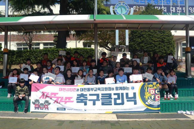 대전동부교육지원청과 협업을 통해, 동부 관내 교육복지사업 학교를 대상으로 실시하는 ‘자주자주 축구클리닉’은 올해로 4년째를 맞이하고 있다. 축구를 통해 어린이와 청소년의 건전한 신체활동을 장려하고, 협동심과 단결성 배양을 위해 기획된 ‘자주자주 축구클리닉’은 4월부터 10월까지 약 20개 학교에서 실시될 예정이다.