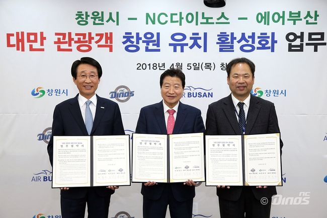 NC는 이와 별도로 창원시, 에어부산과 손잡고 대만 팬 모시기에 앞장서고 있다. 안상수 창원시장, 에어부산 한태근 대표, NC 황순현 대표는 지난 5일 창원시청 회의실에서 업무협약을 맺었다. NC 왕웨이중은 창원 관광홍보대사, 에어부산 홍보모델로 나선다. 창원을 찾는 대만 팬은 왕웨이중 유니폼을 할인가격으로 살 수 있다. 단체관람시 창원 마산야구장의 전광판에 환영인사가 뜨고 경기를 마친 뒤 그라운드 포토타임 기회도 얻는다.