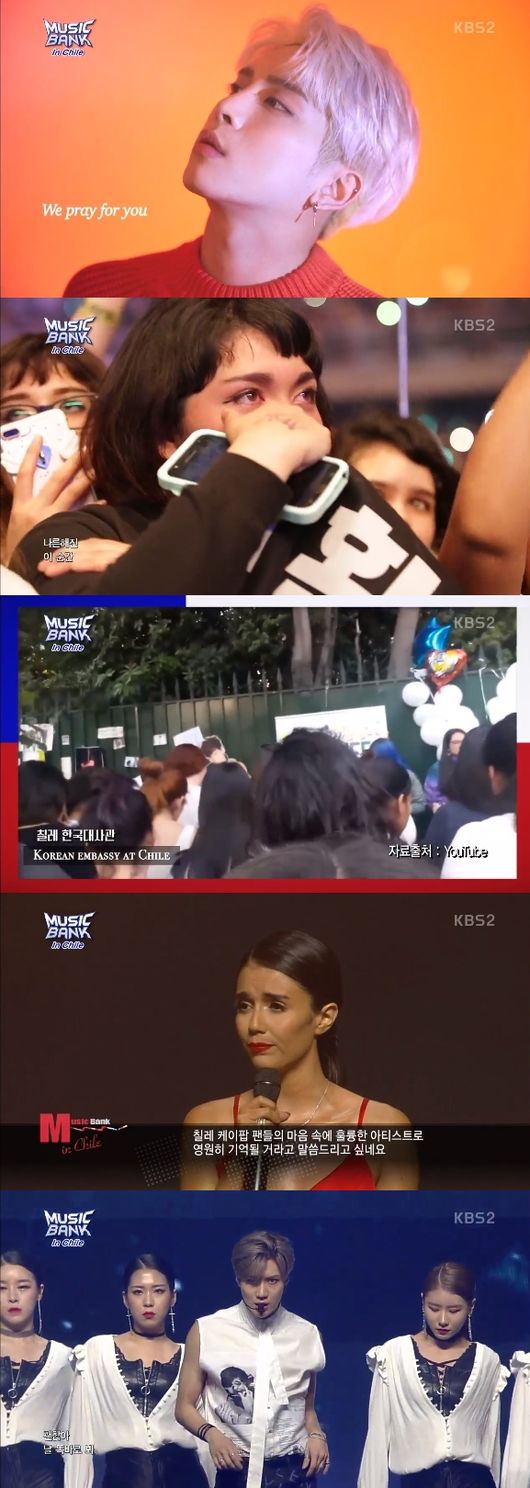 칠레 팬들은 고 종현의 영상을 보며 눈물을 짓다가도 태민의 등장에 아낌없이 환호와 응원을 전했다.
