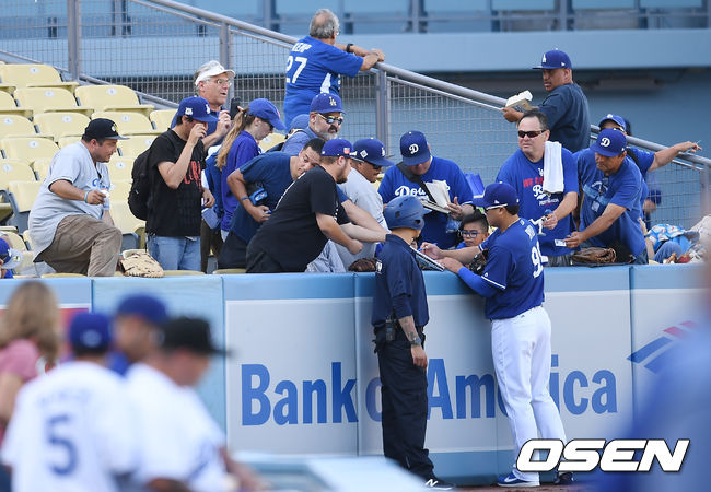 훈련을 마친 류현진은 팬들에게 사인을 해주며 여유를 보였다. 이날 마에다 겐타는 서른 번째 생일을 맞았다. 전날 류현진의 활약으로 4-0으로 이긴 다저스는 분위기가 한껏 고조된 모습이다. / jasonseo34@osen.co.kr