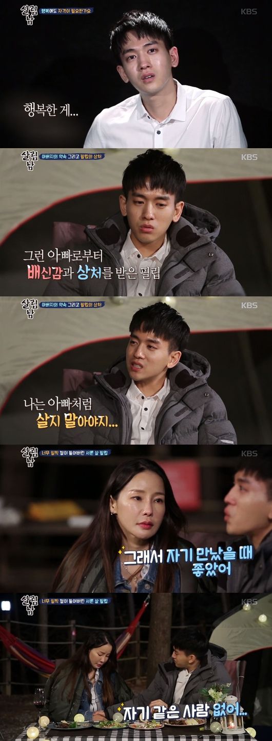 이번 방송 역시 마찬가지. 과거 아버지에게 받은 상처를 눈물로 고백한 류필립은 미나를 향해 "자기 만났을 때 좋았다. 나 밖에 모르는 자기의 모습이. 난 그게 너무 필요했다. 자기 같은 사람 없다"라고 진심을 고백했다. 미나 역시 자신은 몰랐던 류필립의 과거 앞에 미안한 마음을 드러냈다.