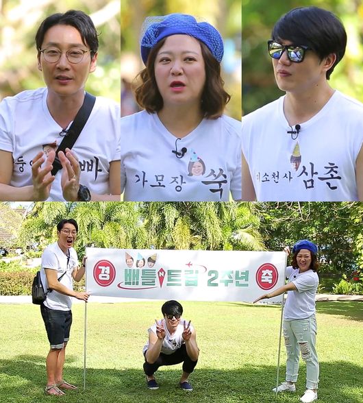 그런가 하면 이휘재-김숙-성시경이 각자 ‘둥이 아빠’, ‘가모장 쑥’, ‘미소천사 삼촌’이라 적혀 있는 티셔츠를 입고 있는 모습이 공개됐다. 이는 김숙이 ‘배틀트립’ 2주년을 기념해 특별히 준비한 것. 이처럼 세 사람이 여행 내내 2년 동안 맞춰 온 호흡만큼이나 꿀 케미를 과시, 여행의 흥을 더욱 끌어 올렸다는 후문이다.