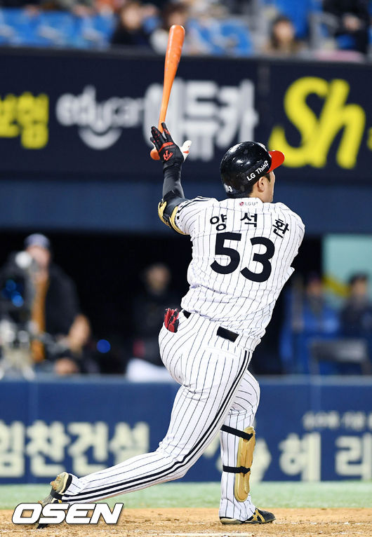 양석환은 13일 잠실구장에서 열린 KT전에서 8번 1루수로 선발 출장했다. 4회까지 무피안타로 호투하던 피어밴드 상대로 5회 채은성과 유강남이 연속 안타로 출루했다. 오지환의 유격수 땅볼로 1사 1,3루. 폭투가 나와 2,3루가 됐다.