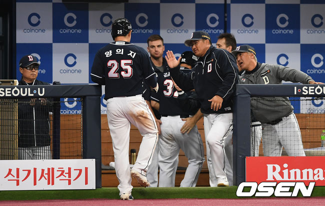 8회초 두산이 사실상 승부에 쐐기를 박았다. 선두타자 박건우의 안타에 이어 김재환, 양의지가 연속으로 안타를 때려내 한 점을 더했다. 여기에 오재일의 좌익수 방면 타구가 고종욱의 아쉬운 수비와 맞물리면서 2루타가 됐고, 주자 두 명이 추가로 들어왔다. 불붙은 두산의 타선은 쉽게 식지 않았다. 오재일 이후 김민혁의 안타, 류지혁의 볼넷으로 다시 만루를 만든 두산은 정진호의 적시타, 최주환의 싹쓸이 3루타로 9-0으로 달아났다.